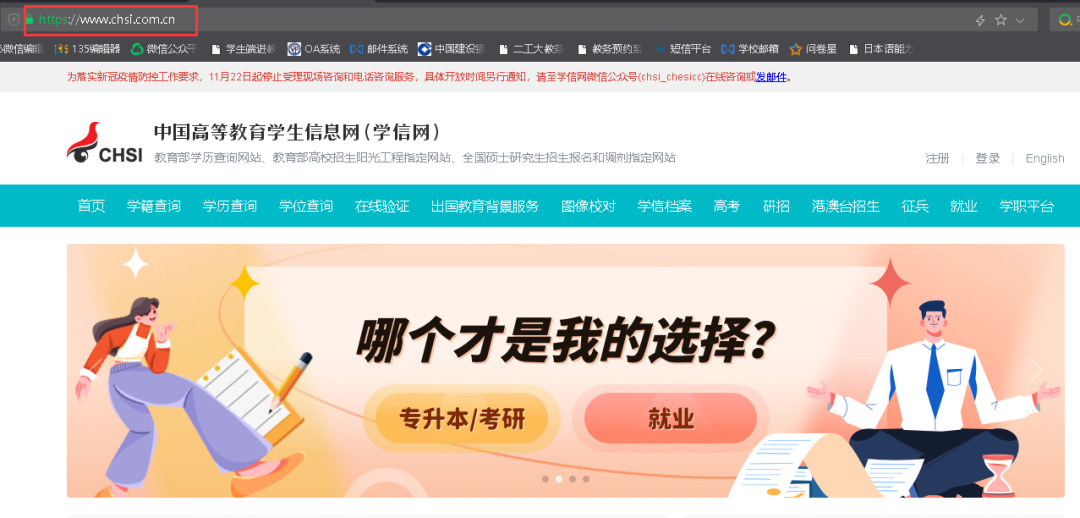 (1)在浏览器的地址中输入:http://www.chsi.com.cn