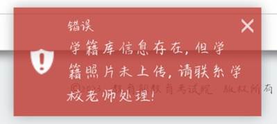5、由于报名平台会对学校教务系统导出的照片进行自动检测,无法匹配不符合报名要求的照片,因此,如报名时弹出下图提示,请准备一张非白底的标准证件照(jpg格式,小于200K,以本人学号命名)以附件(切勿在邮件正文中直接贴图!!!)形式直接发到wsshen@sspu.edu.cn,并在邮件正文中注明所在学院、专业、班级、学号、联系电话,否则不予处理!