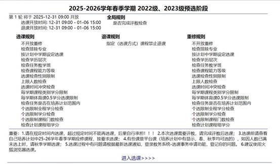 各位同学请注意,2025-2026学年春季学期选课即将开始,请仔细阅读以下内容: