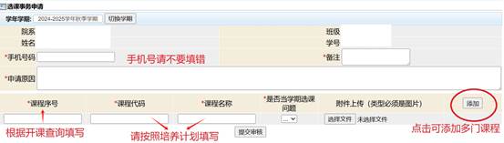 如有多门课程信息需要添加,可点击“添加”按钮,进行多门课程加课申请。